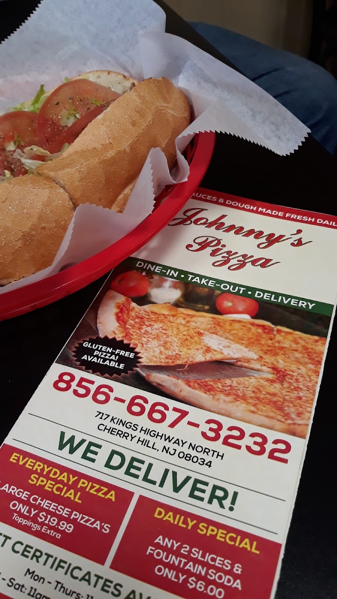 At Johnny’s Pizza in Cherry Hill, the menu feels built for satisfying, no-nonsense comfort-simple staples done in a way that makes you want to mix-and-match across classic slices, hearty sandwiches, and a lighter salad option. If you’re coming in for the basics, the Cheese Pizza Slice is the kind of dependable go-to that sets the tone, while the Pepperoni Pizza Slice adds that familiar savory punch for anyone who wants a little more edge. For something thicker and more filling, the Pepperoni Sicilian Pizza brings a bold, square-slice vibe that leans into a heartier bite. On the specialty side, the Grandma Chicken Caprese Pizza stands out as a more elevated choice-still pizza at its core, but with a fresher, more layered personality than the standard slice counter rotation. Beyond pizza, the sandwich lineup rounds out the experience: the Mozzarella Cheesesteak delivers a rich, melty, satisfying warmth, while the Italian Hoagie offers that classic deli-style balance for people who prefer a cold-cut staple. If you want a quick comfort bite that’s straightforward and nostalgic, the Grilled Cheese fits perfectly into the menu’s easygoing rhythm. And for anyone trying to keep it lighter without skipping flavor, the Chicken Caesar Salad with Onions provides a crisp alternative that still feels like a complete meal. Overall, the standout items work together to give the menu variety without losing focus-pizza-first, but supported by the kind of dependable sides and sandwiches that make the whole lineup feel complete.